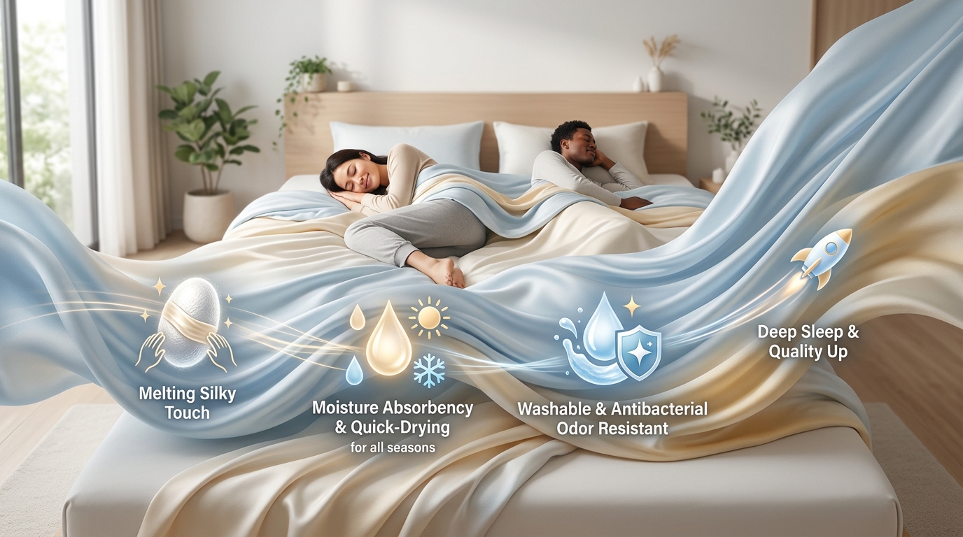 寝つきが悪いと感じている方や、もっと快適な睡眠環境を求めている方にとって、この「シルキータッチ」は、まさに理想の安眠へと導く魔法のような手触りと言えます。